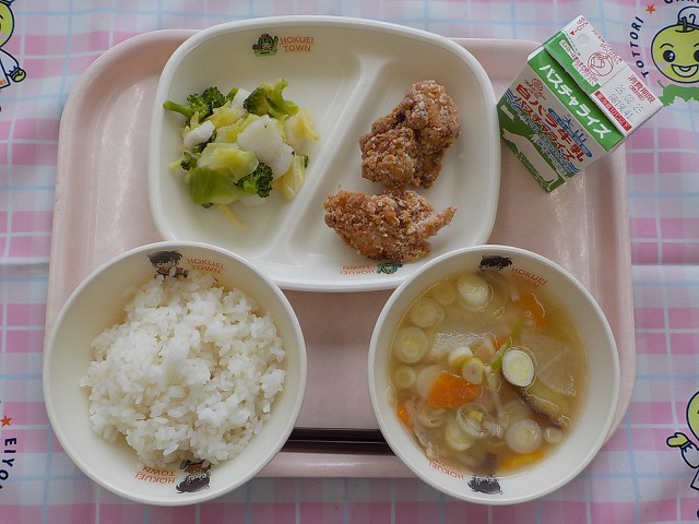 ごはん・牛乳・キムチから揚げ・呉汁・ながいもの和風サラダ