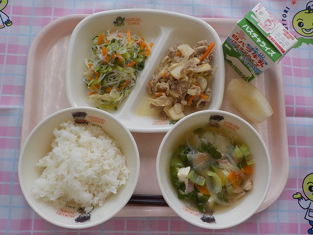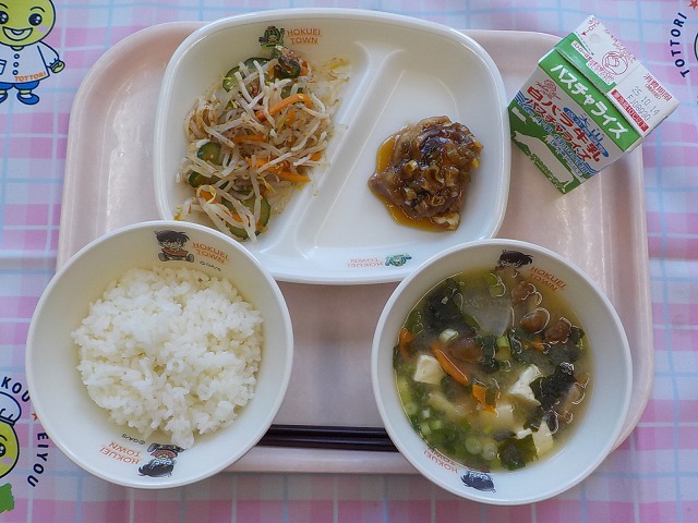 ご飯・牛乳・いわしの梅みそ煮・沢煮椀・のり酢和え