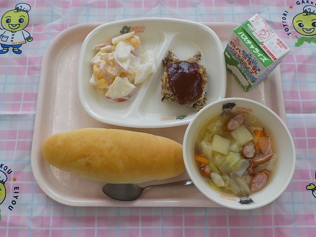 コッペパン・牛乳・おからハンバーグ・ポトフ・秋のフルーツヨーグルト