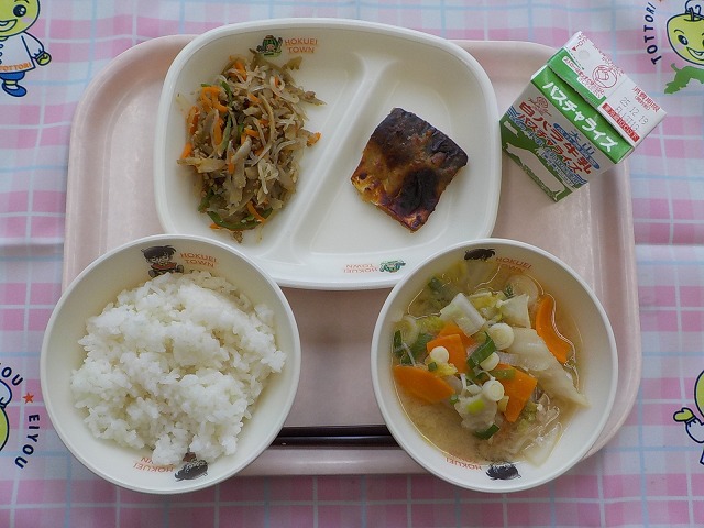 ごはん・牛乳・さばのみそこうじ焼き・北栄野菜の豚汁・きんぴらごぼう