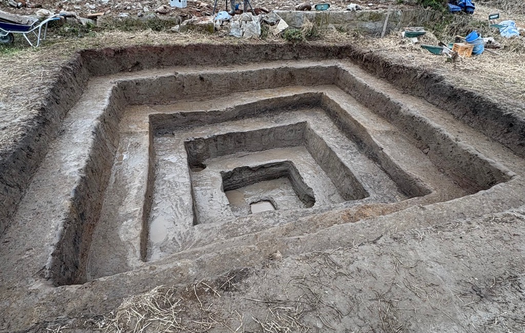 1メートルくらいの深さで溝の跡みたいなものが見つかっているわ。