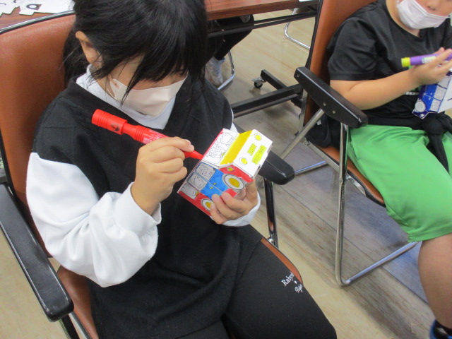最後に好きな色を塗った貯金箱を作って終了です。