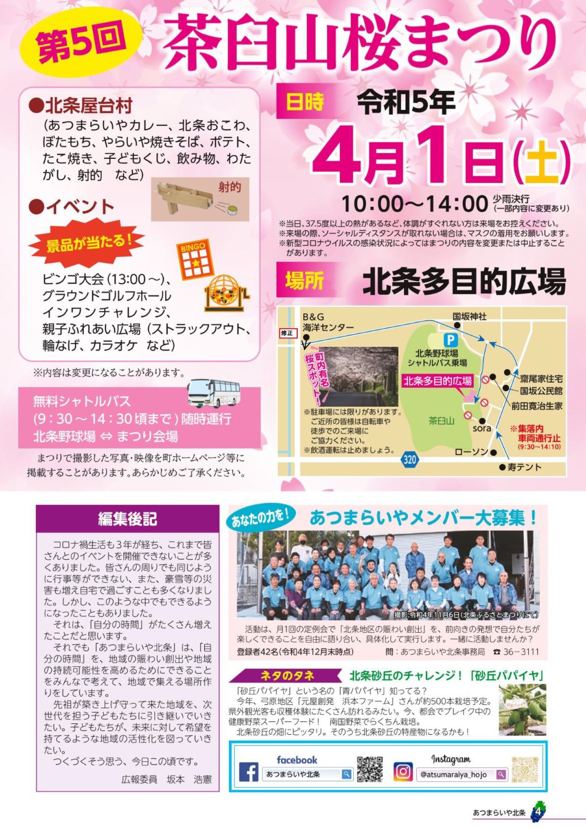 ※4ページ目の桜まつり「会場位置図:B&Gの位置」を修正しました。