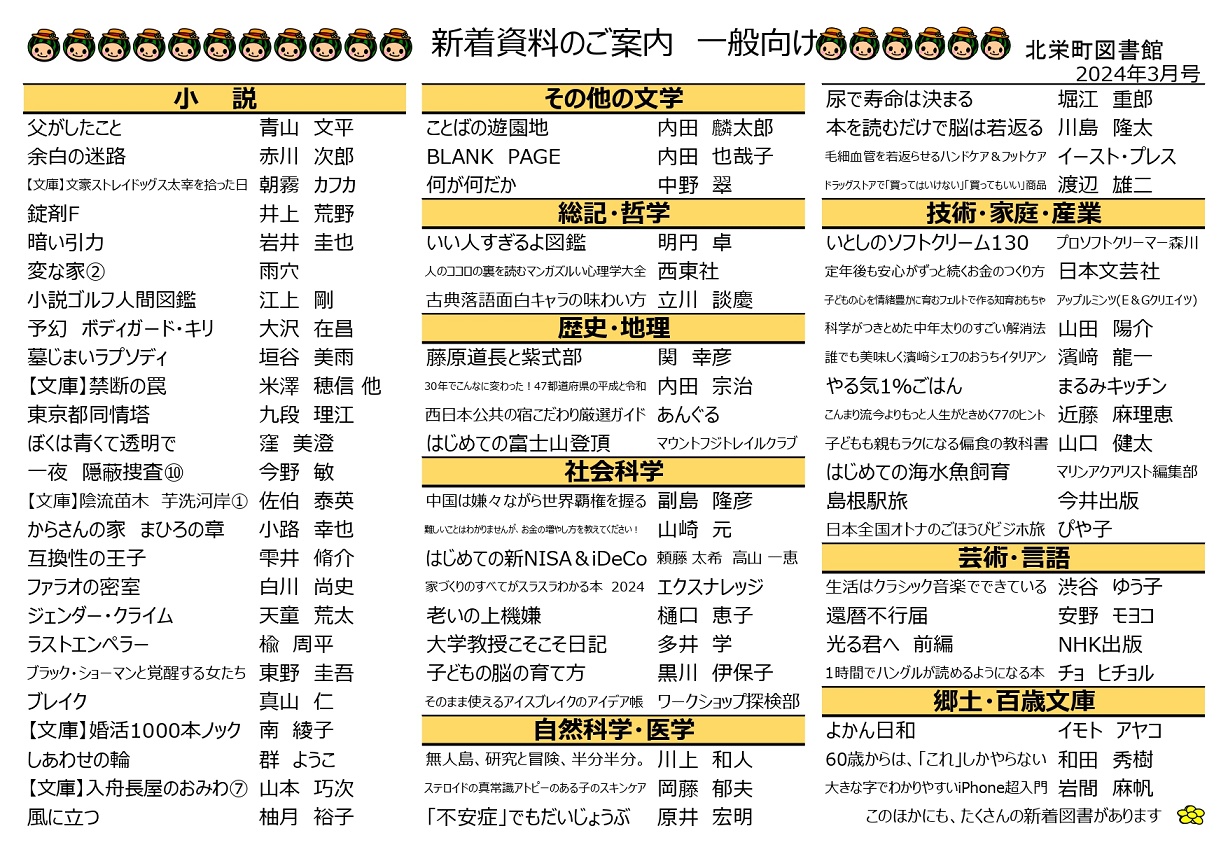 図書館に新しく入った本です。このほかにもたくさんあります。貸出中の場合は、予約ができますので、お問い合わせください。
