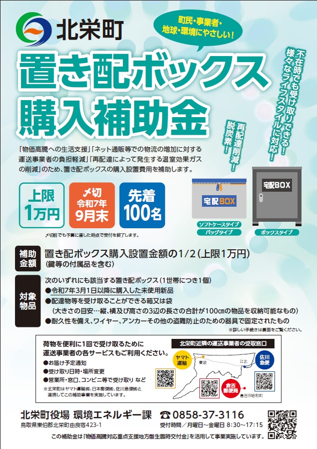 北栄町町民・事業者・環境にやさしい!置き配ボックス購入設置補助金交付要綱