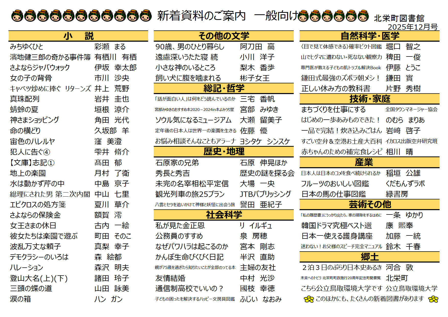 図書館に新しく入った本です。このほかにもたくさんあります。貸出中の場合は、予約ができますので、お問い合わせください。