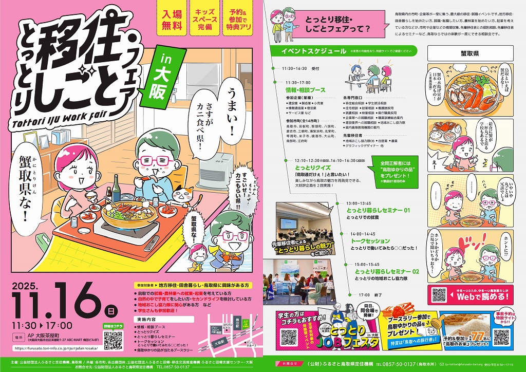 鳥取ゆかりの品が当たるクイズ企画やブースラリーをはじめ、先輩移住者によるセミナーなど鳥取県について知れる企画が盛り沢山です!