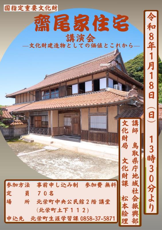 この度、齋尾家住宅について皆さまに知っていただくため、講演会を開催いたします。